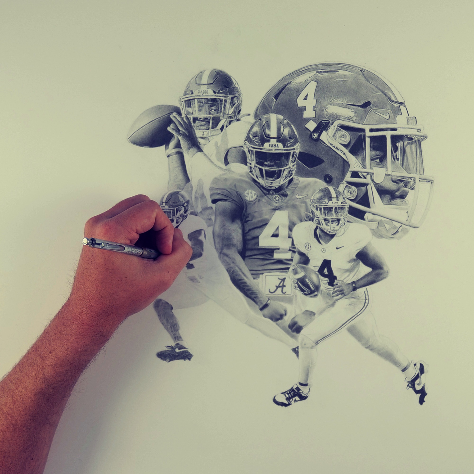 The original drawing is hand-signed by both Jalen and Keegan, and comes in white frame with white matting. The original artwork also includes a hand-written note – from Keegan to you – about the artwork.
