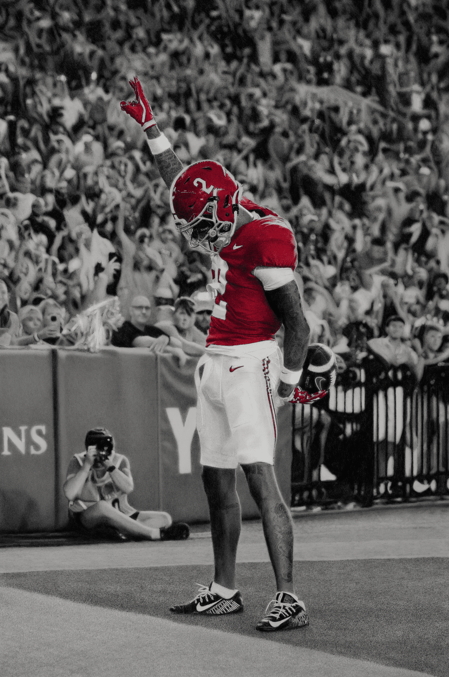 Ryan’s signature touchdown pose, two fingers raised, a simple gesture that has already become part of his identity.