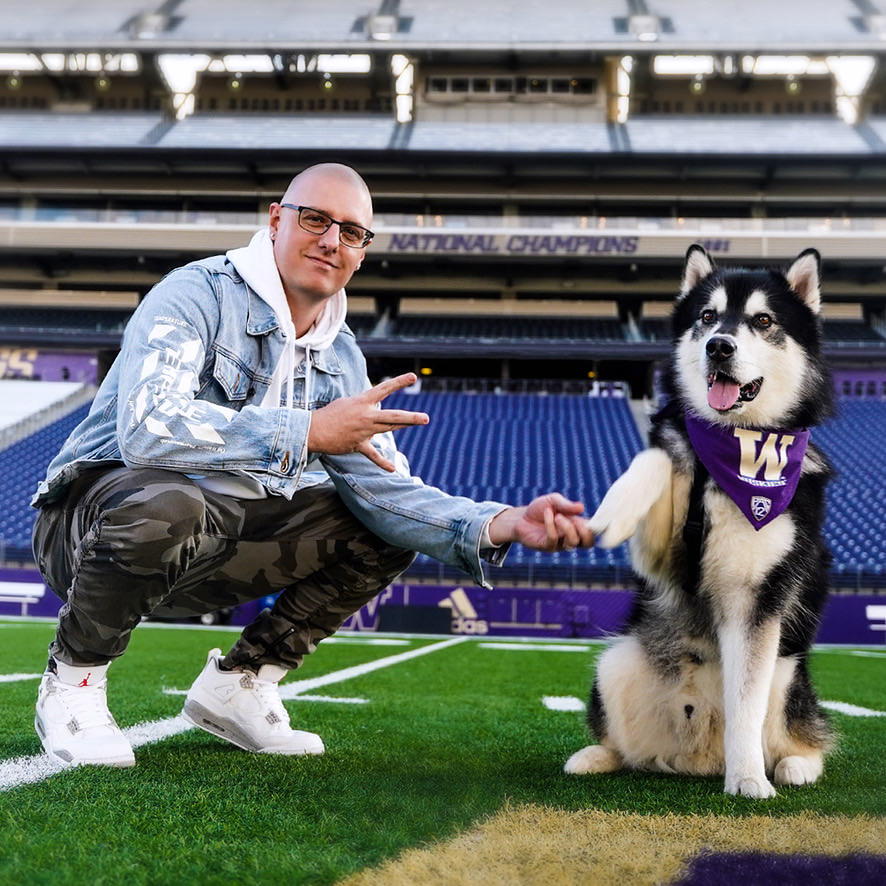 Create a piece that celebrates Dubs not just as a mascot, but as a symbol of Husky football itself.