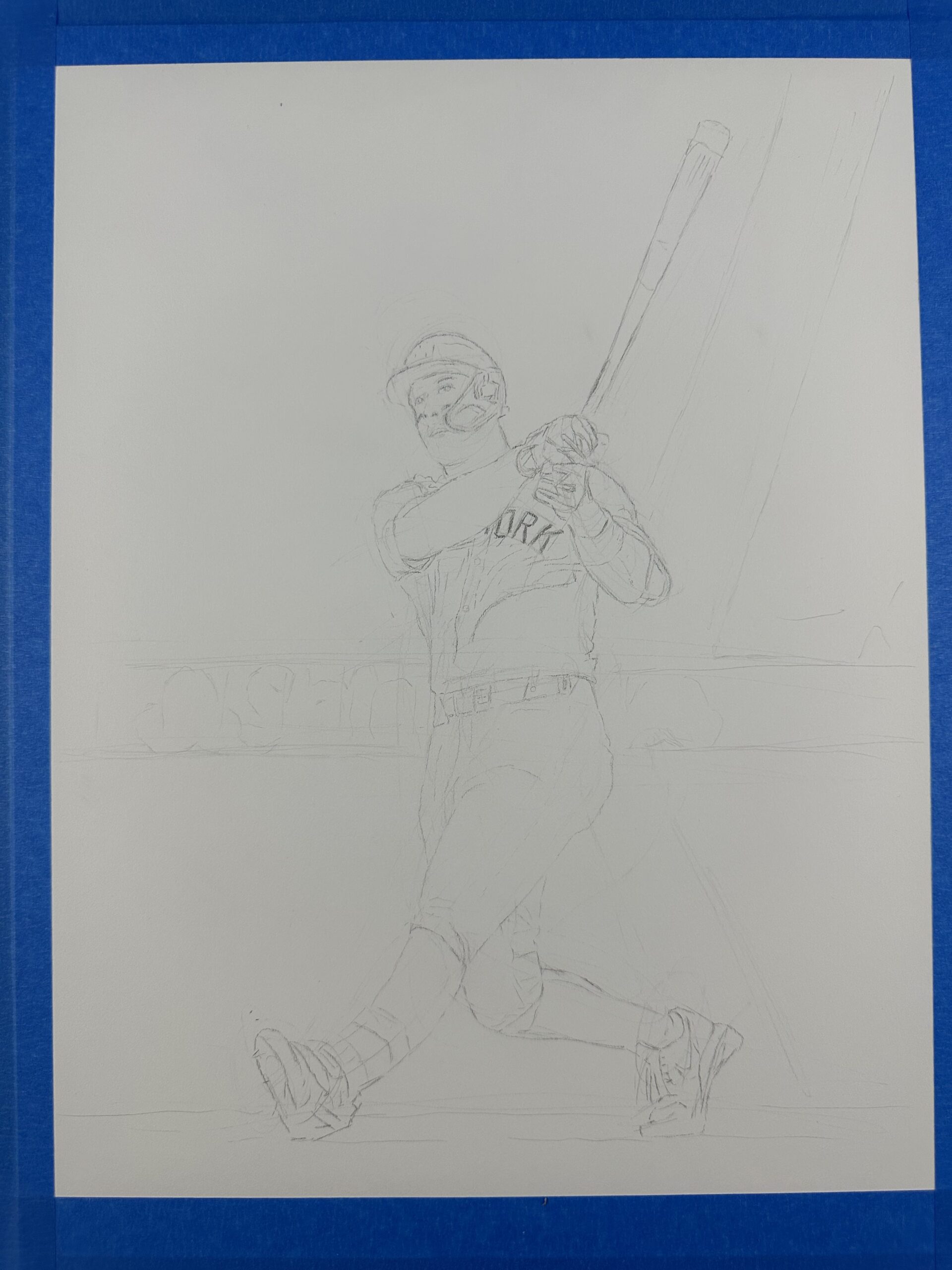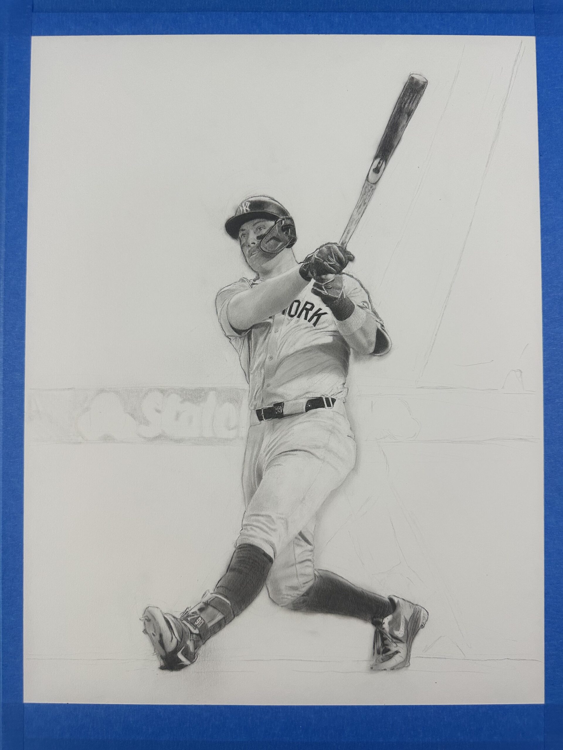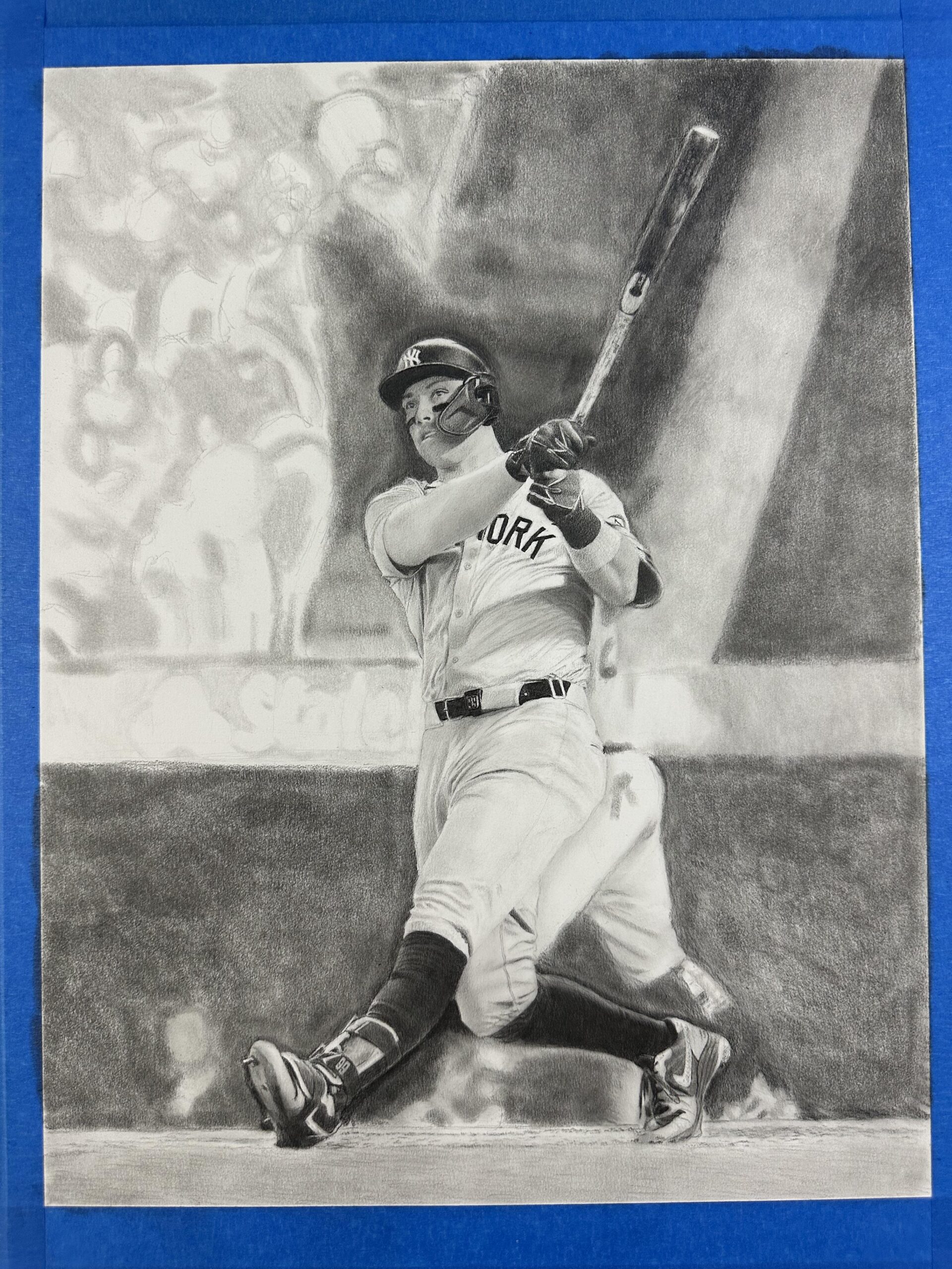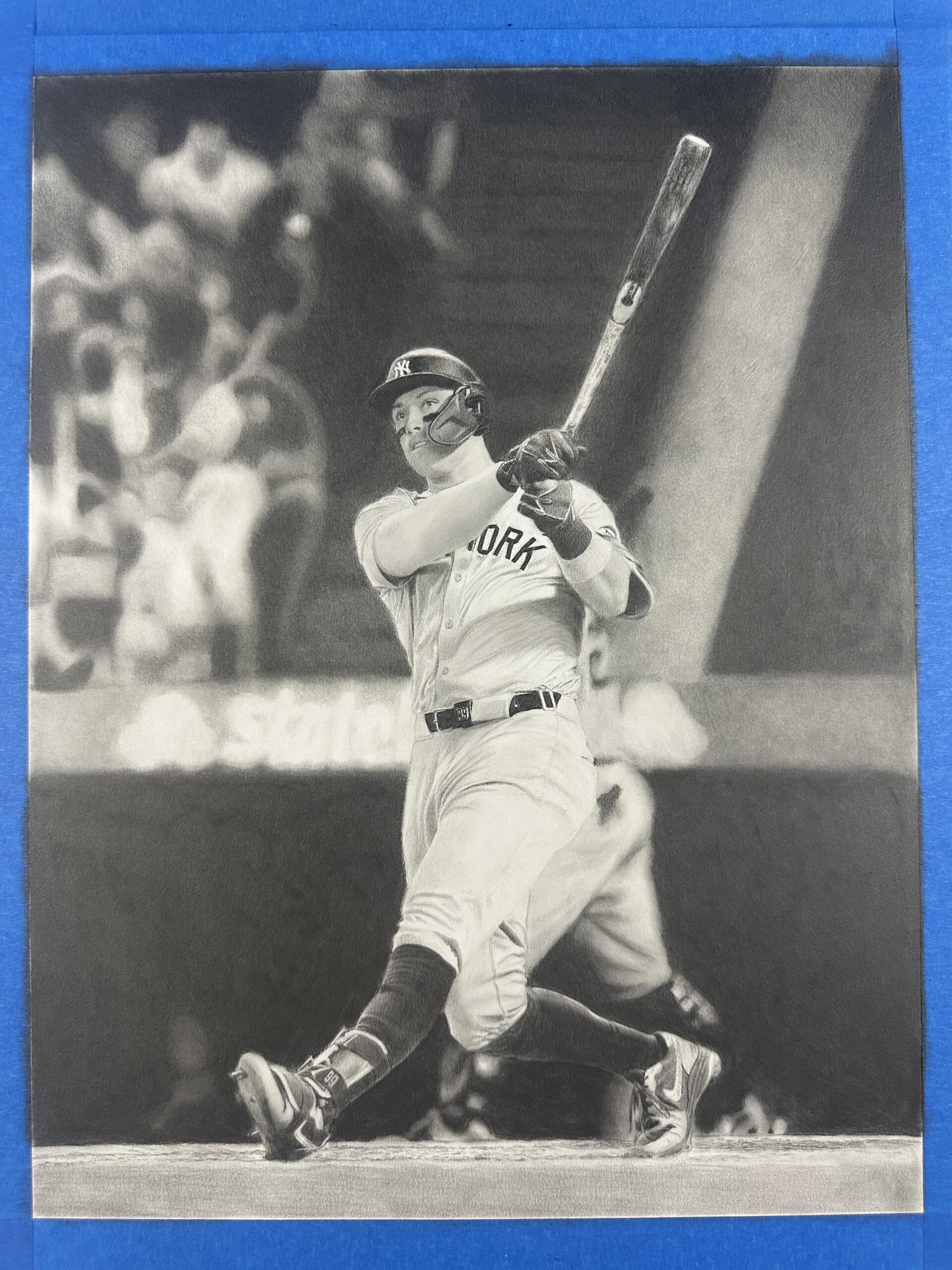 This is stunning hyper-realistic drawing is featured on baseball cards in 2025 Topps Update Series (the final artwork as well as three “in-progress” images).