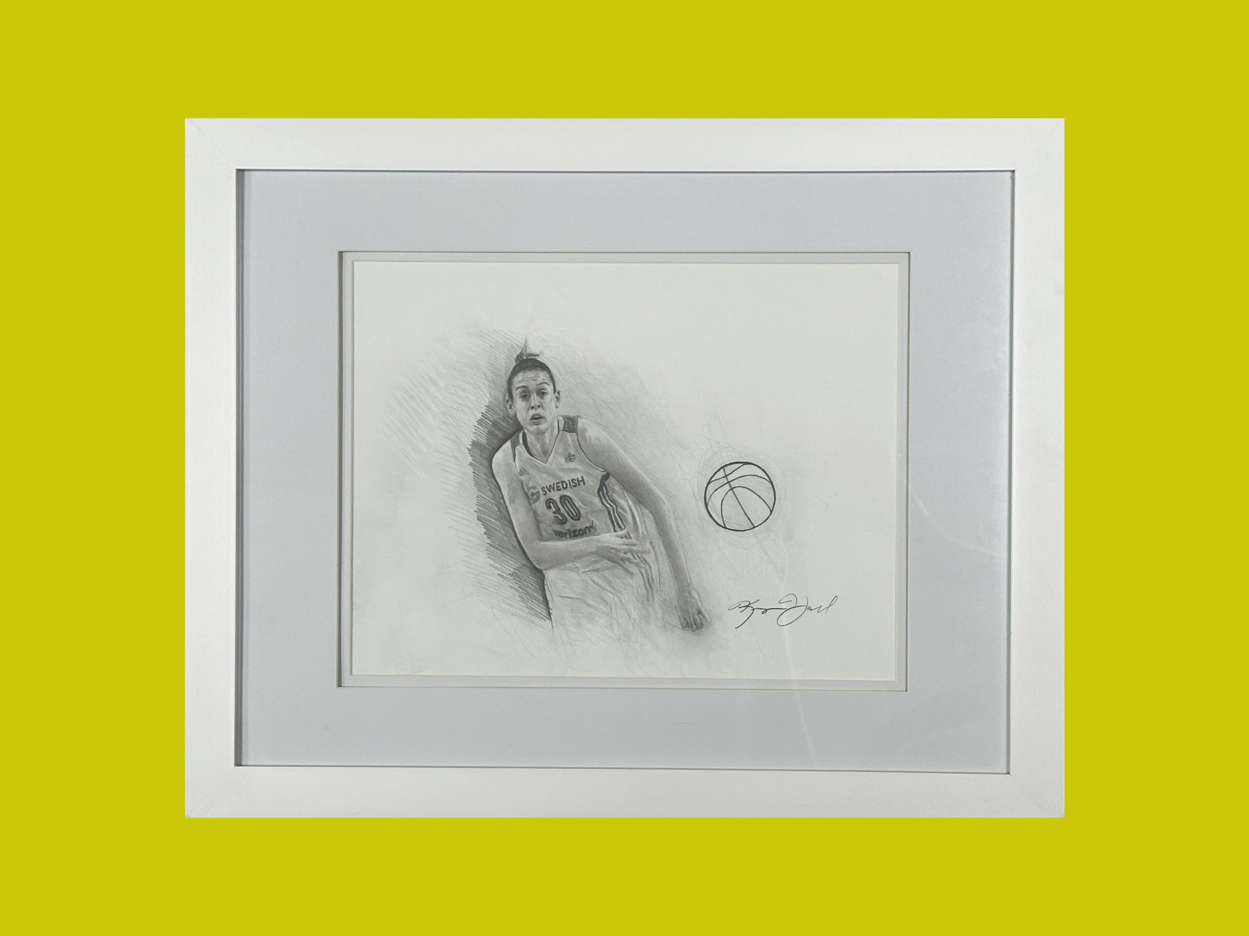 In this dynamic pencil sketch, WNBA superstar Breanna Stewart is captured mid-action, exuding athleticism and grace. With fluid pencil strokes that convey swift movement, Stewart is shown in the midst of passing the ball. The lines of her body suggest a seamless flow of energy, highlighting her agility and skill on the basketball court.