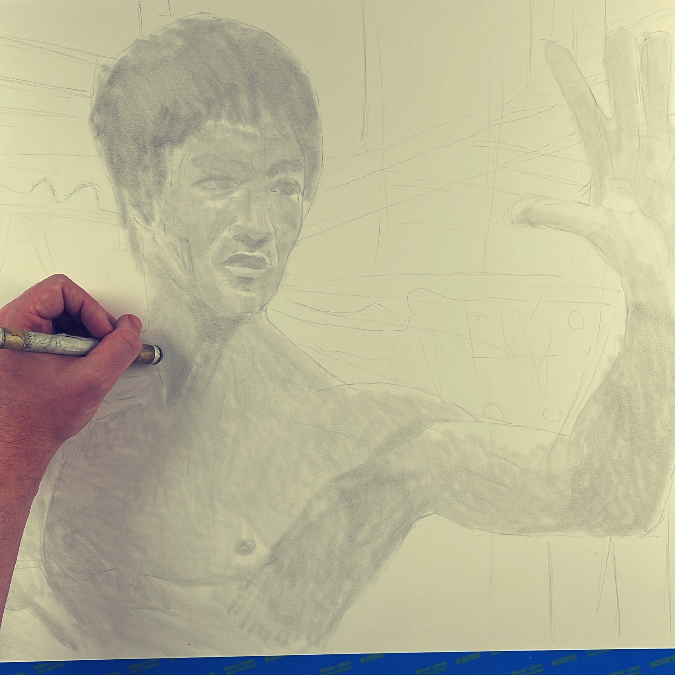 An iconic and influential martial artist, actor and philosopher, Bruce Lee’s impact on culture has been immense. I had so much fun creating this drawing because of its dynamic composition, emotional elements, and spacial elements like the blurred background.