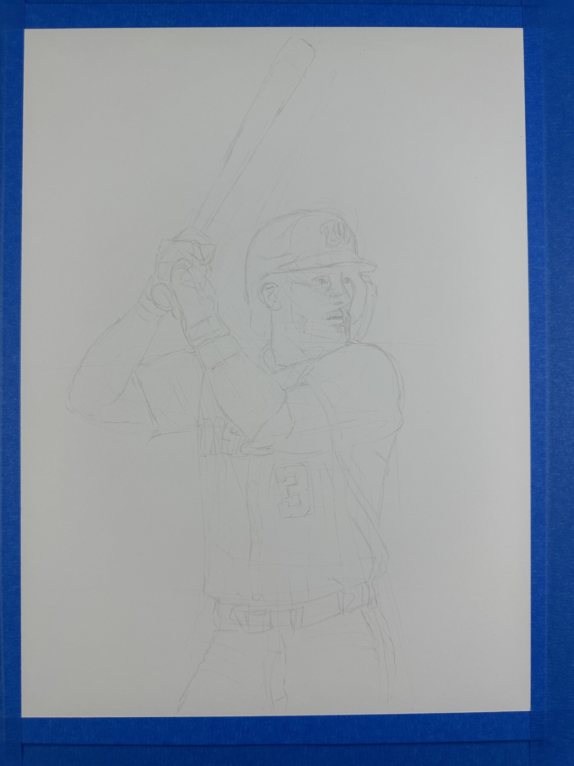This is stunning hyper-realistic drawing is featured on baseball cards in 2025 Topps Update Series (the final artwork as well as three “in-progress” images).