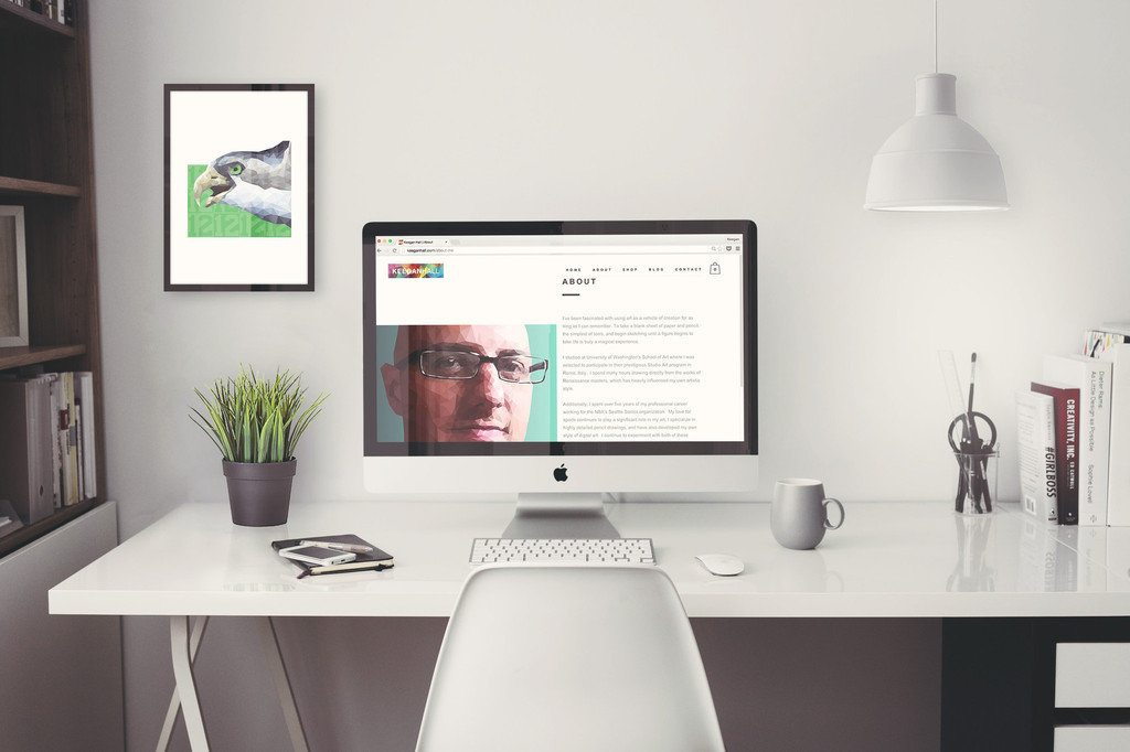 The digital drawing features a portrait of a Seahawk, but what makes it unique is that it is created entirely out of small, individual triangles. Once each triangle is created, it’s then colored – one at a time.