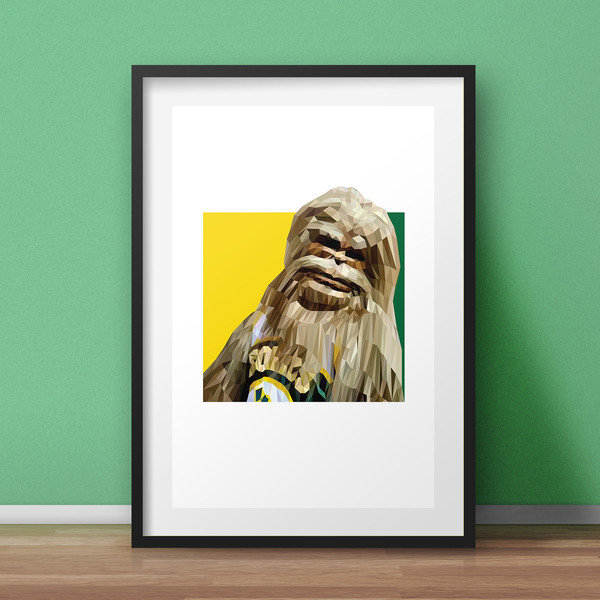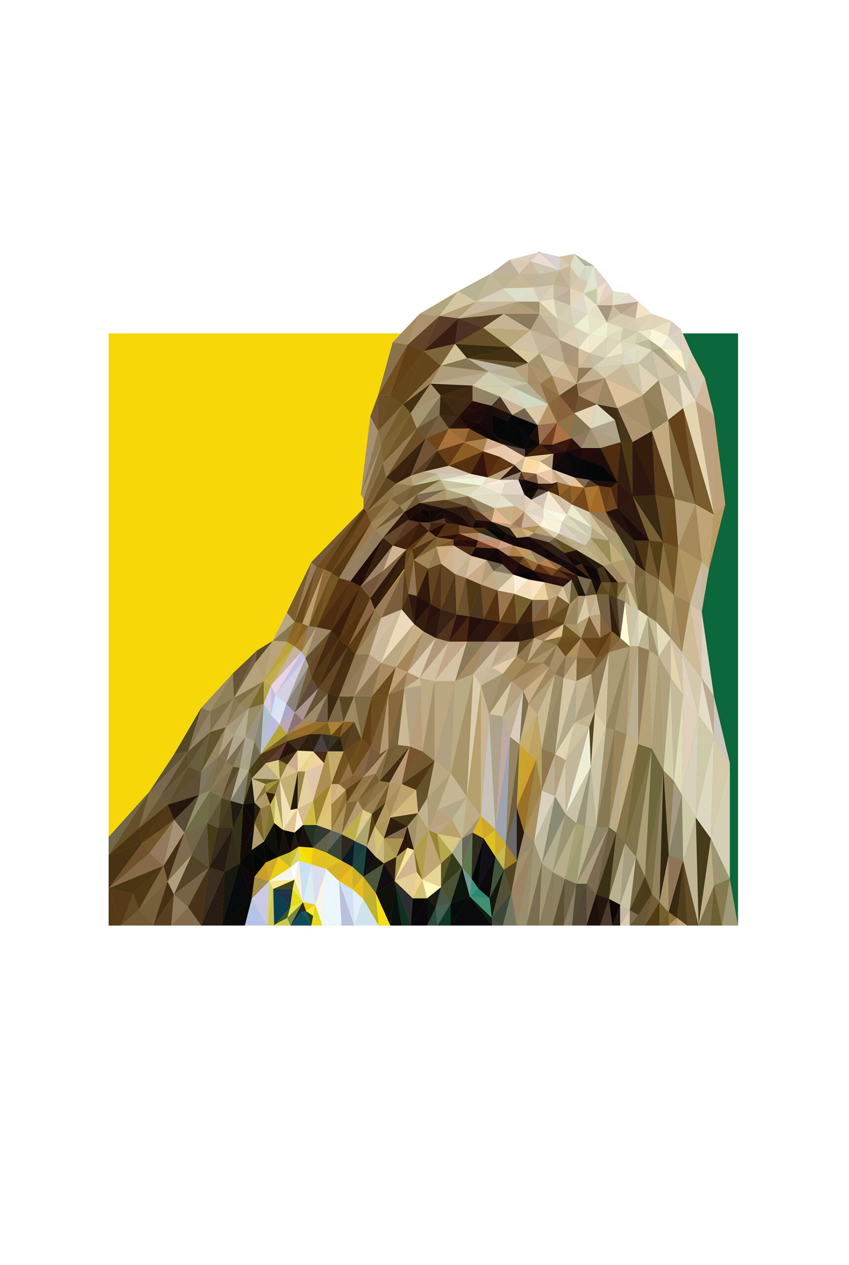 The triangles are arranged in a way that gives the portrait a three-dimensional effect, with the darker shades creating shadows and the lighter shades creating highlights.