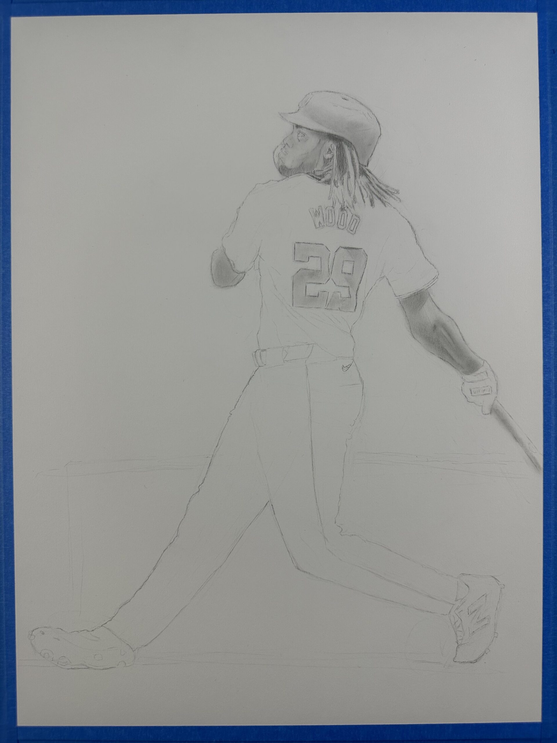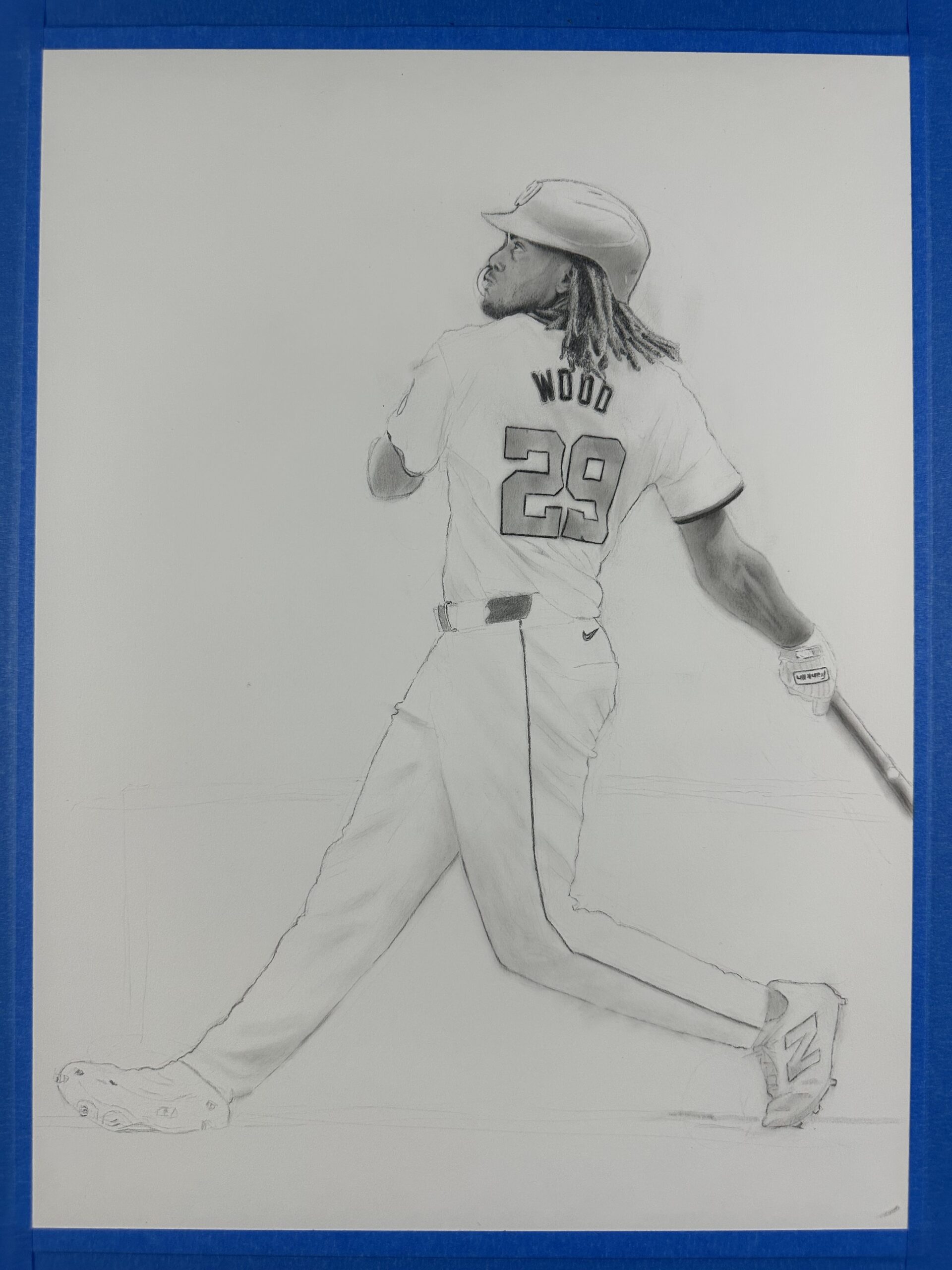 This is stunning hyper-realistic drawing is featured on baseball cards in 2025 Topps Update Series (the final artwork as well as three “in-progress” images).