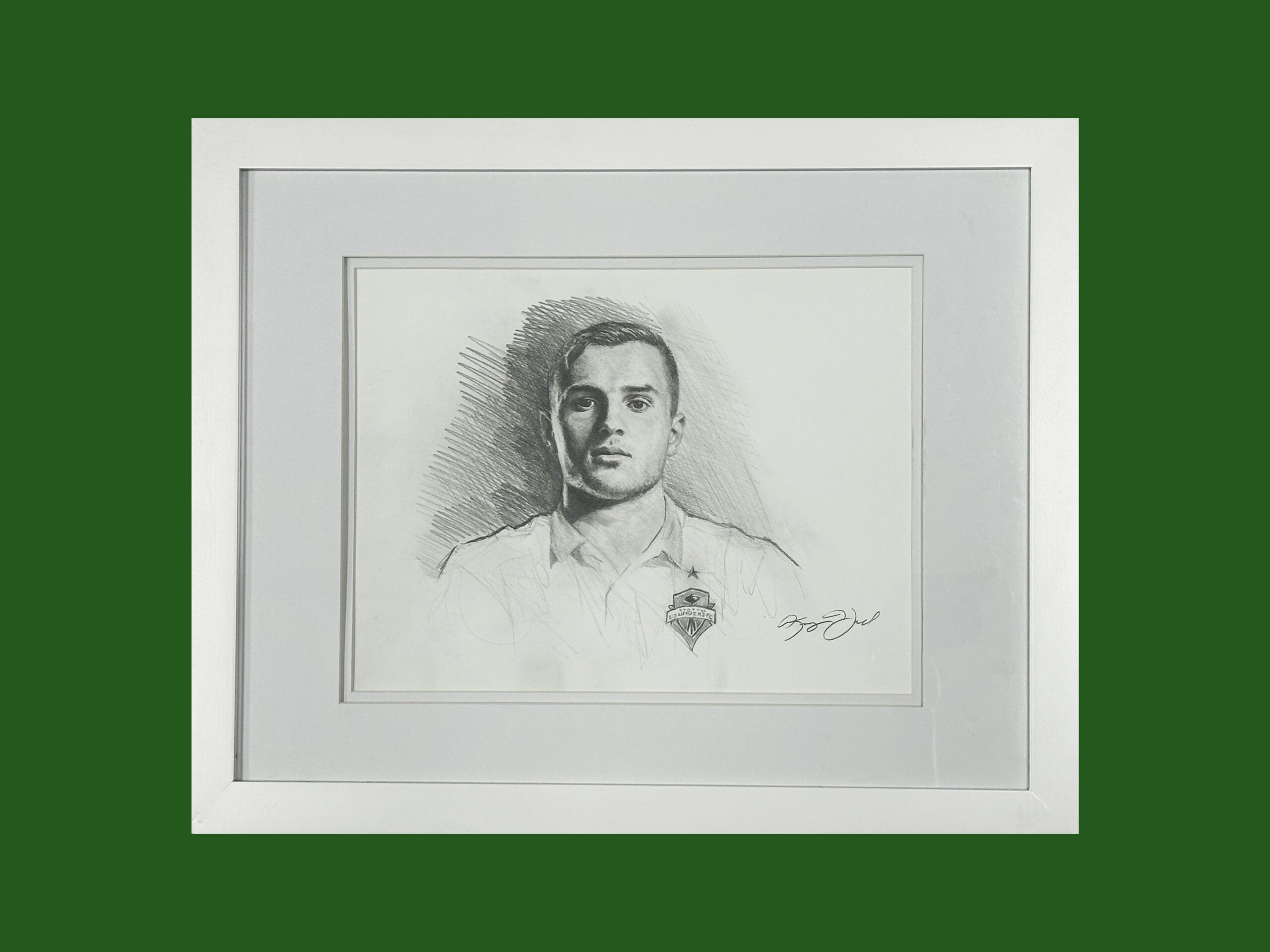 ORIGINAL DRAWING: The 12″ x 10″ original drawing comes in a 20″ x 16″ white frame and white matting (which truly compliments the dark graphite), and also includes a hand-written note from Keegan – to you – about the drawing.
