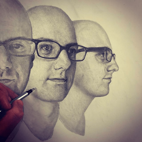 ORIGINAL DRAWING: The 30″ x 22″ original drawing comes in a 35″ x 26″ white frame and white matting (which truly compliments the dark graphite), and also includes a hand-written note from Keegan – to you – about the drawing.