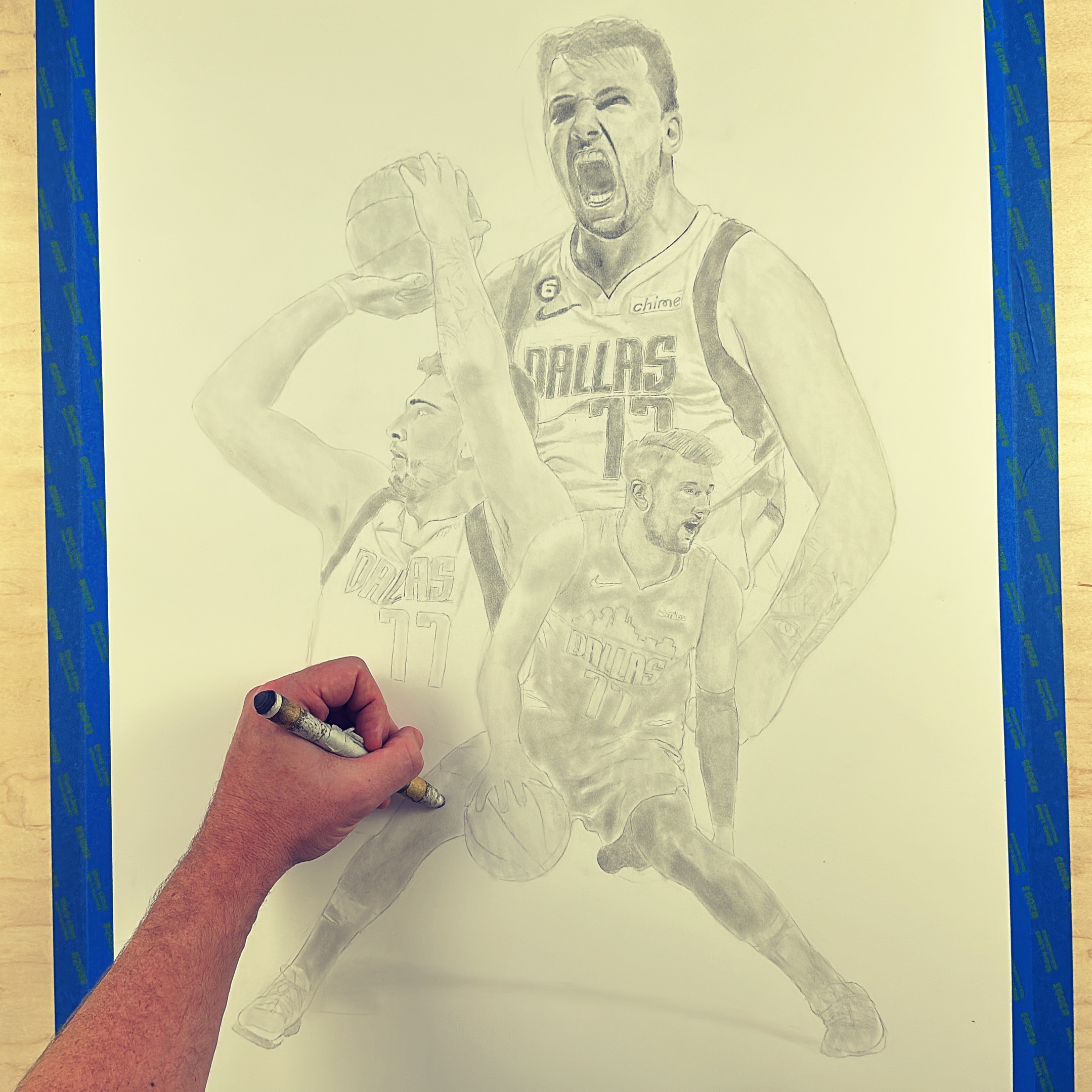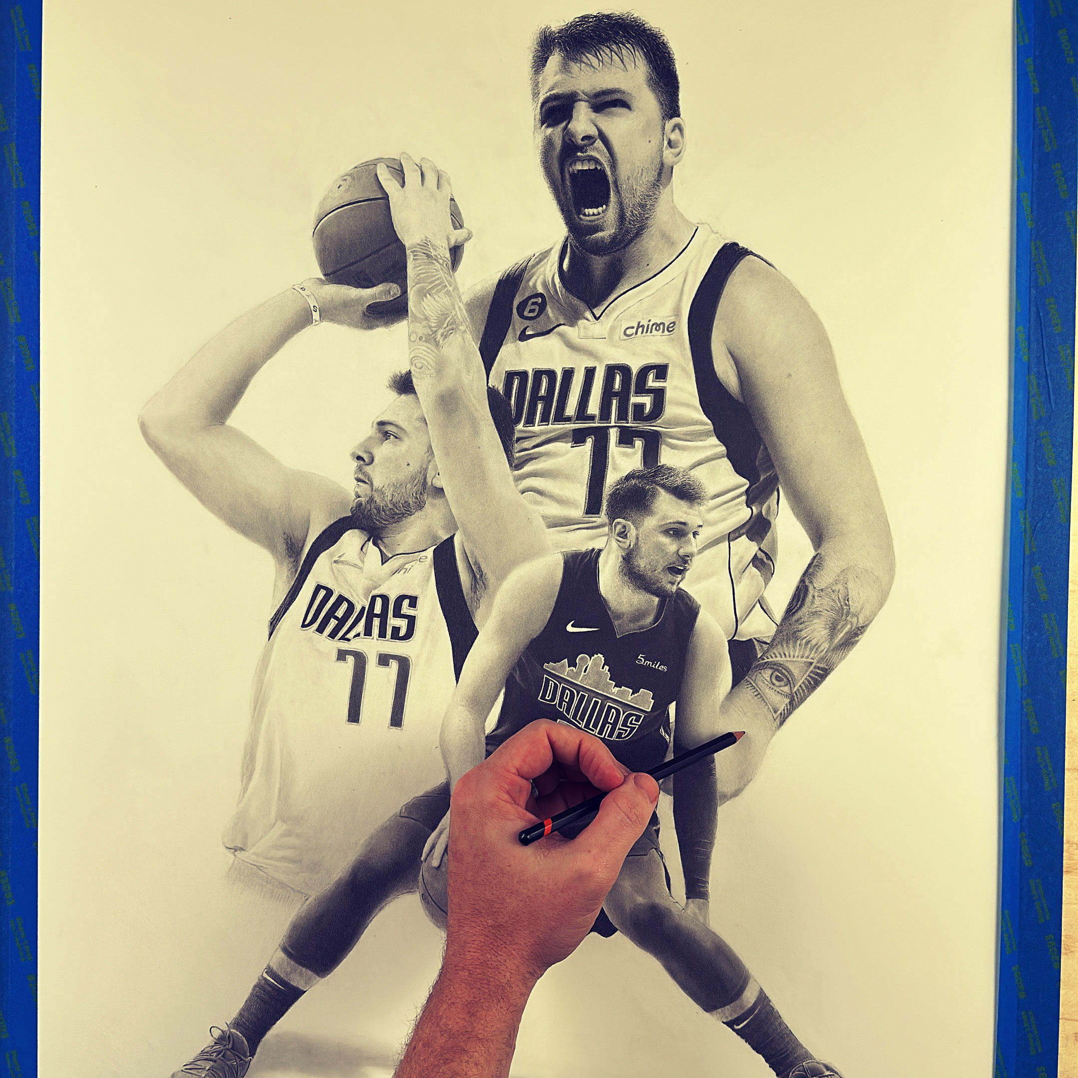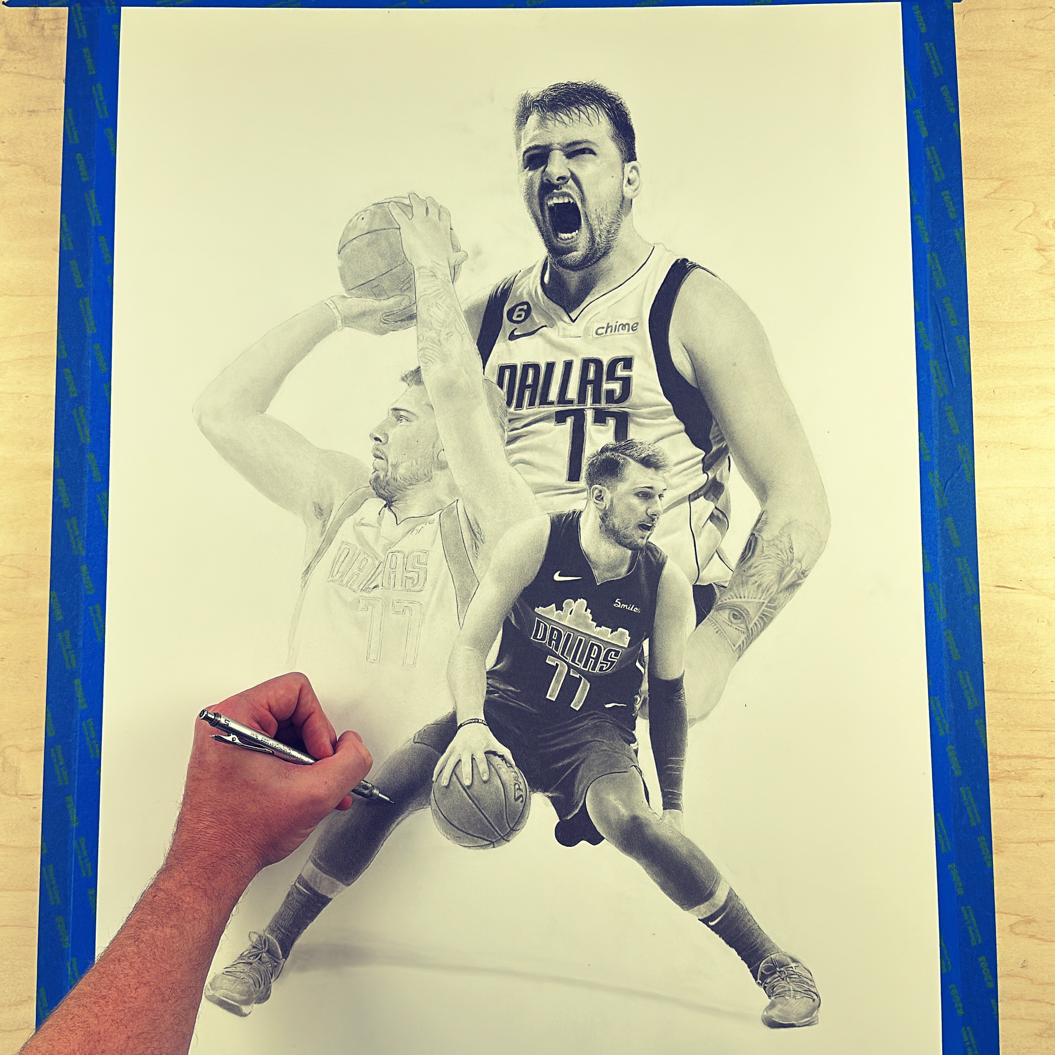 Keegan Hall has created a stunning pencil drawing featuring Luka Doncic, the star player from the Dallas Mavericks, in three different basketball poses. The drawing is incredibly realistic, capturing the essence of Doncic’s passion and skill on the court.