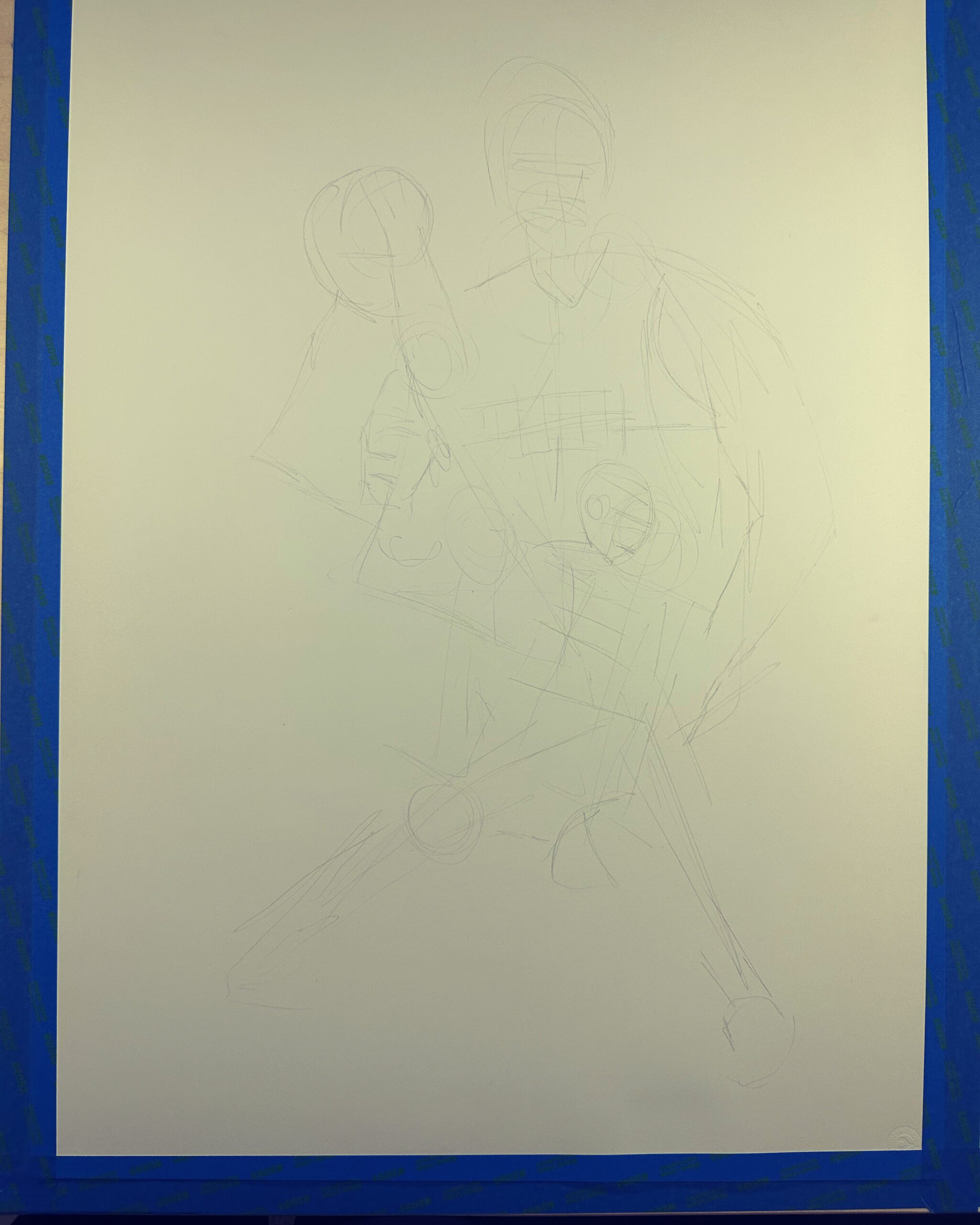 ORIGINAL DRAWING: The 15″ x 22″ original drawing comes in a 30″ x 22″ white frame and white matting (which truly compliments the dark graphite), and also includes a hand-written note from Keegan – to you – about the drawing.