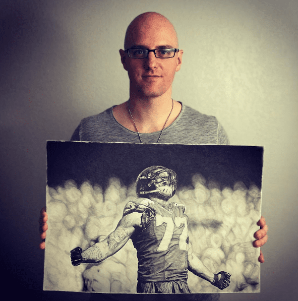 This original drawing is hand-signed by artist Keegan Hall and Seahawks Michael Bennett.