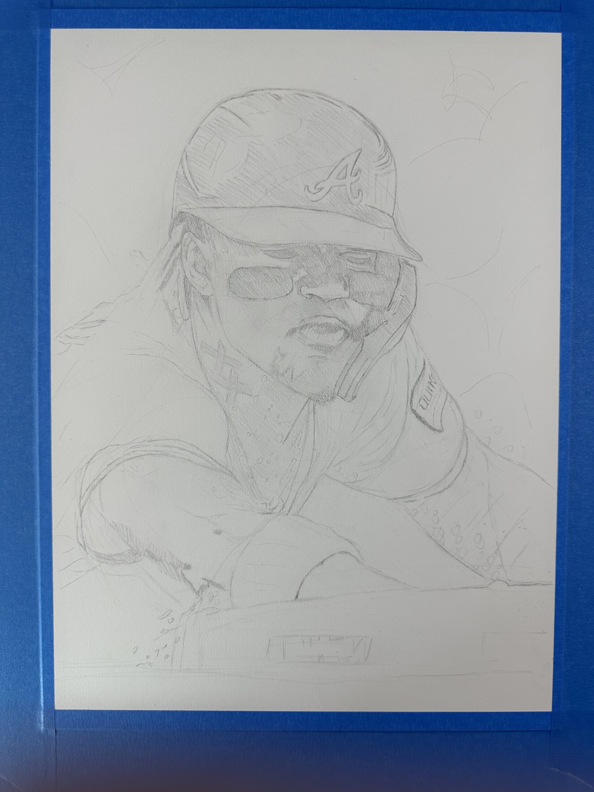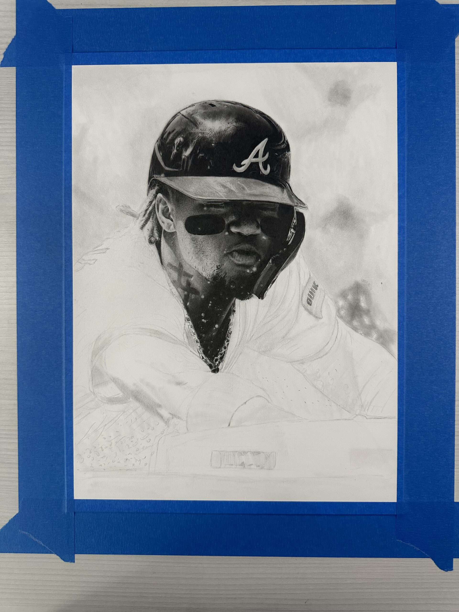Perfect for Braves fans and collectors alike, this piece isn’t just a drawing — it’s a front-row seat to the fire and ferocity that define Ronald Acuña Jr. and the game he plays with unmatched passion.