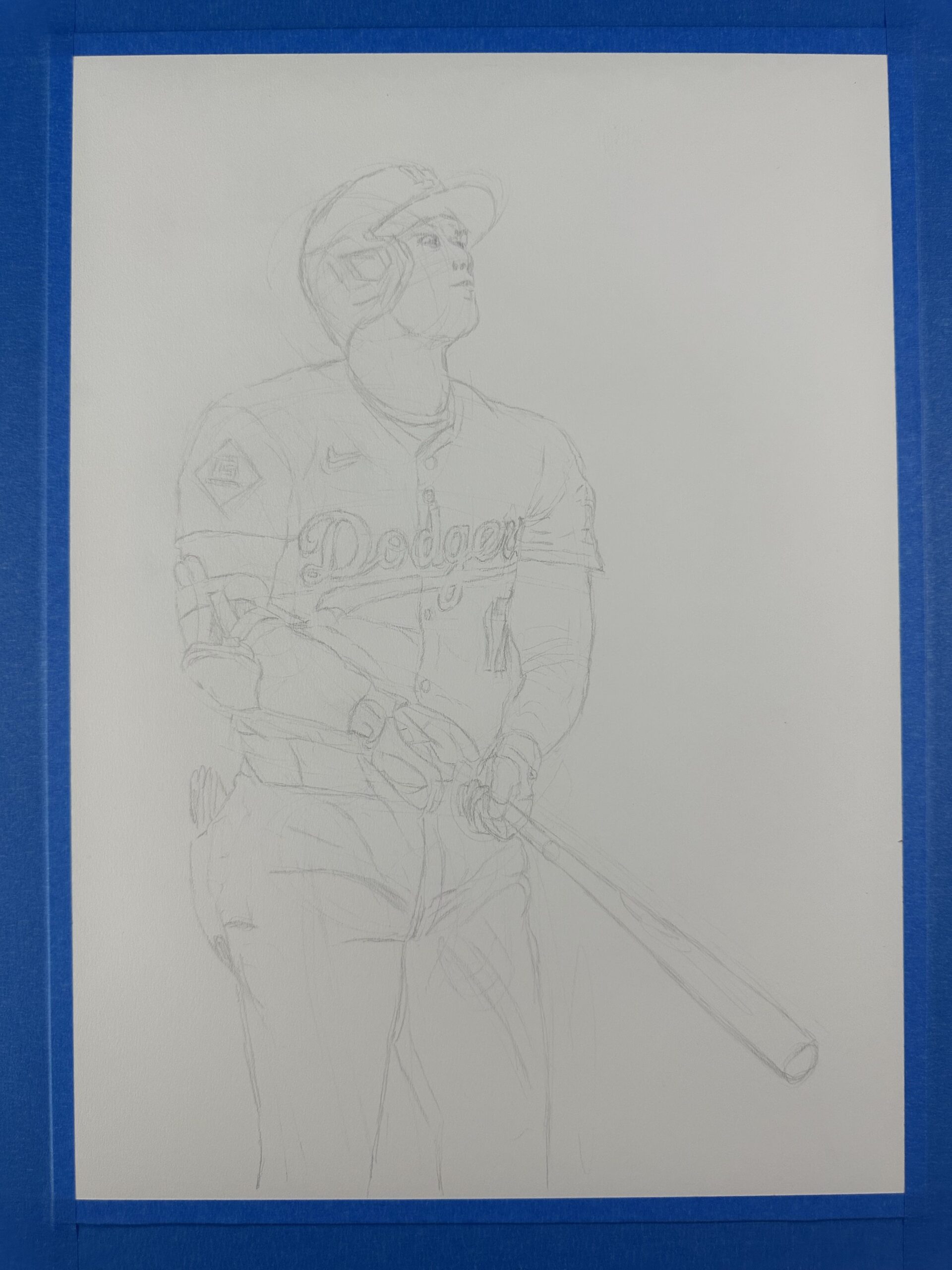 This graphite drawing captures Shohei Ohtani of the Los Angeles Dodgers in one of baseball’s most electrifying moments: launching a towering home run and holding his finish as he watches the ball sail out of the ballpark. It is the perfect blend of power, grace, and unmistakable Ohtani swagger.