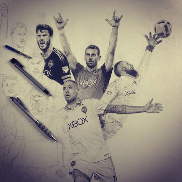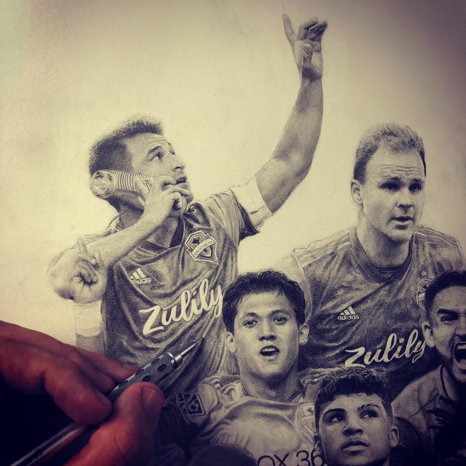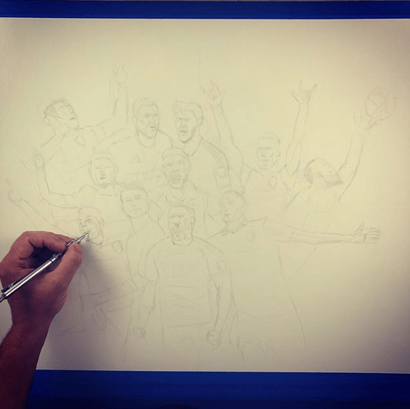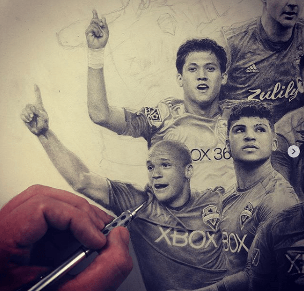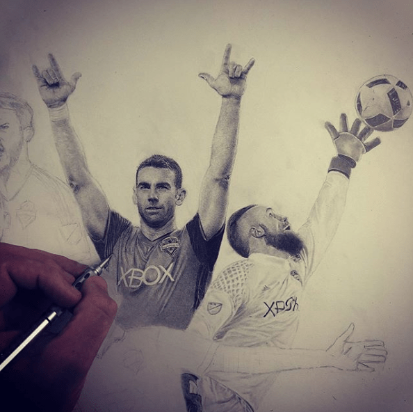 ORIGINAL DRAWING: The 30″ x 22″ original drawing comes in a 35″ x 26″ white frame and white matting (which truly compliments the dark graphite), and also includes a hand-written note from Keegan – to you – about the drawing.