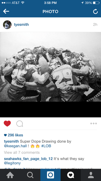 This realistic pencil drawing by features the “Legion of Boom,” the famed Seattle Seahawks defense led by Kam Chancellor, Richard Sherman, and Earl Thomas.