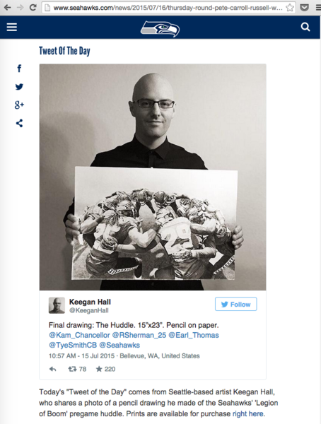 This realistic pencil drawing by features the “Legion of Boom,” the famed Seattle Seahawks defense led by Kam Chancellor, Richard Sherman, and Earl Thomas.